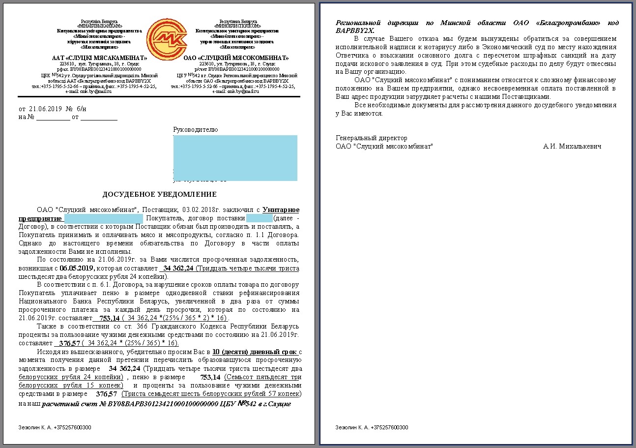 Когда покупатель нарушил условия договора, рассчитать сумму пени и подготовить досудебное уведомление в программе «Гедымин» теперь вы сможете автоматически. Такая возможность реализована новым документом «Расчет пени и процентов», который позволяет рассчитать и начислить пени исходя из суммы задолженности, ставки по договору, ставки рефинансирования и срока просрочки. На основании расчета формируется печатная форма детализации расчета и досудебное уведомление.