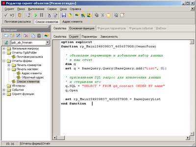 Предположим, мы хотим создать отчет, который будет содержать список клиентов из базы данных с их телефонами. Список должен быть упорядочен по алфавиту. Данный отчет будет вызываться из окна «Список клиентов».