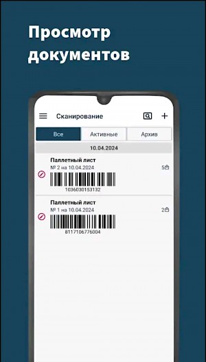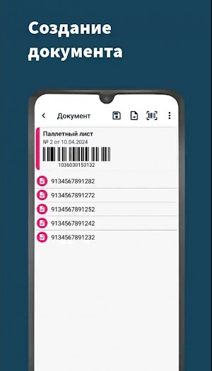 - Создание документа "Паллетный лист": приложение обеспечивает быстрое и удобное создание паллетных листов путем сканирования товаров на паллете. Это значительно увеличивает эффективность и точность процесса формирования паллетных листов.